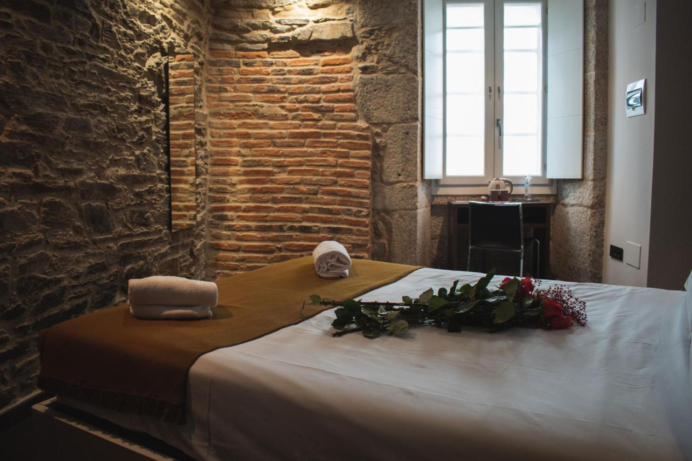 El A Casa Do Peregrino se encuentra a 50 metros de la catedral de Santiago de Compostela, entre las plazas Cervantes y Quintana. Alberga una impresionante escalera de madera y habitaciones con paredes rústicas de piedra.