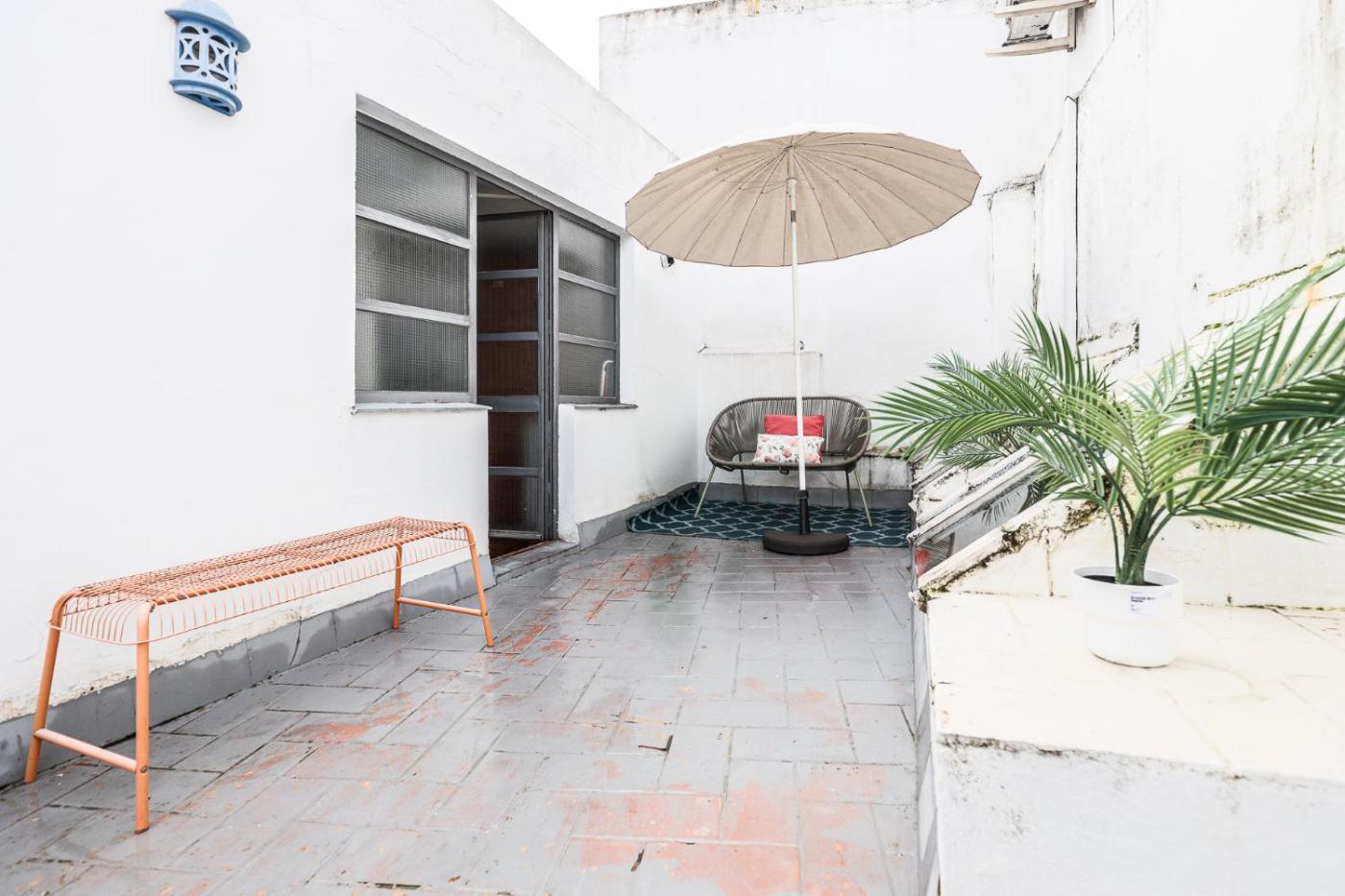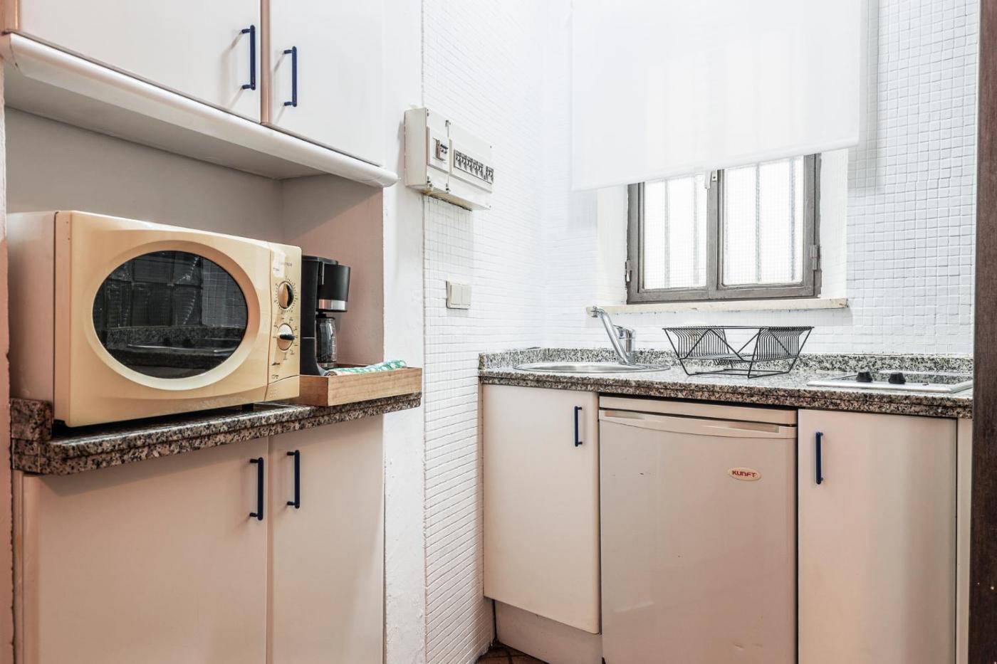 Estudio con balcón. The well-equipped kitchen has a refrigerator, kitchenware and a microwave. This studio is air-conditioned and features a private bathroom, a washing machine and a terrace. The unit offers 1 bed.
