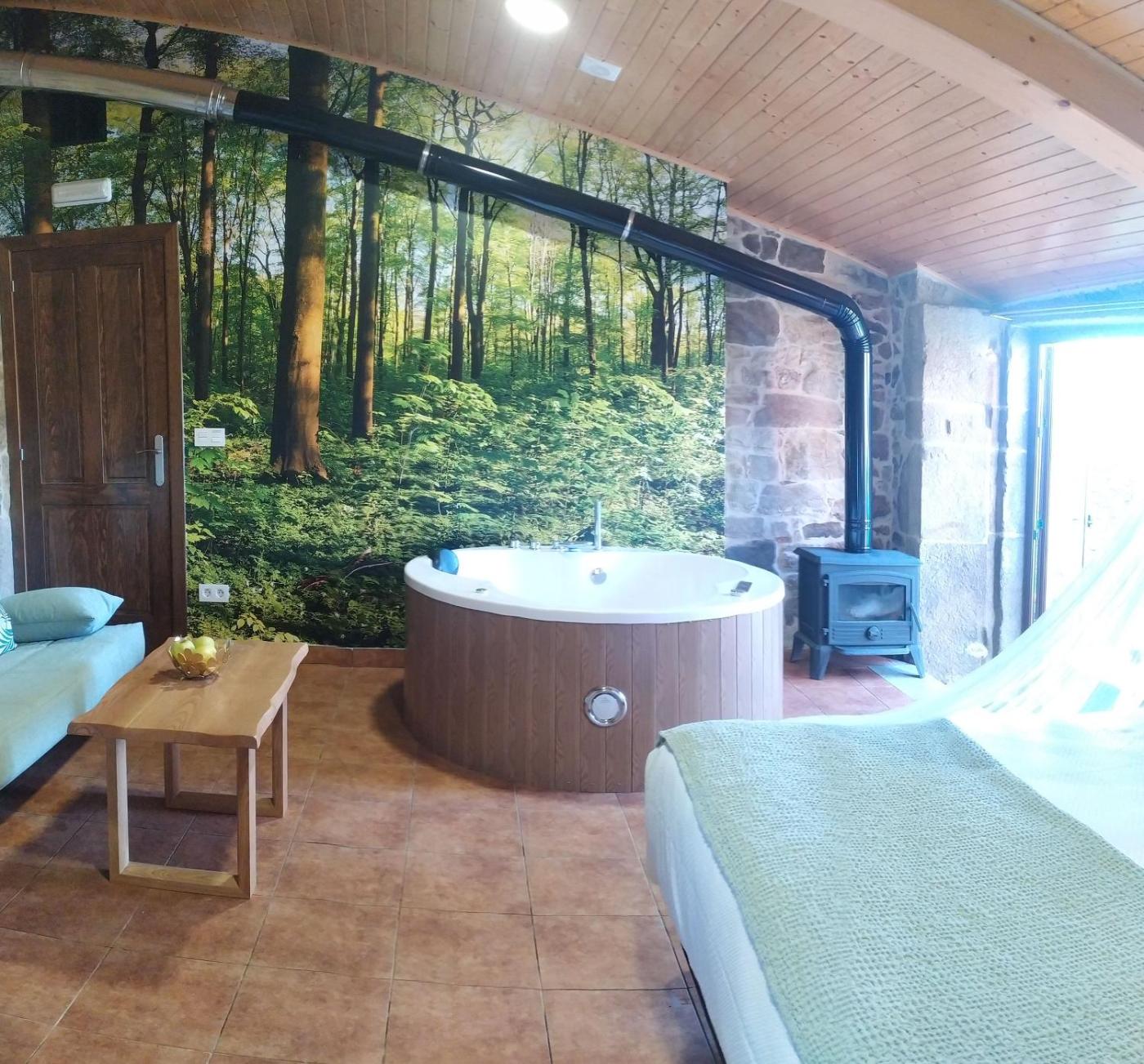 Apartamento Deluxe. This apartment boasts a pool with a view, hot tub and fireplace. Featuring a private entrance, this apartment is comprised of 1 living room, 1 separate bedroom and 1 bathroom with a walk-in shower and a bath. Guests will find a stovetop, a refrigerator, kitchenware and a microwave in the well-fitted kitchenette. The apartment also has a barbecue. This wheelchair accessible apartment features a coffee machine, a seating area with a flat-screen TV and a roll-in shower. The unit offers 2 beds.