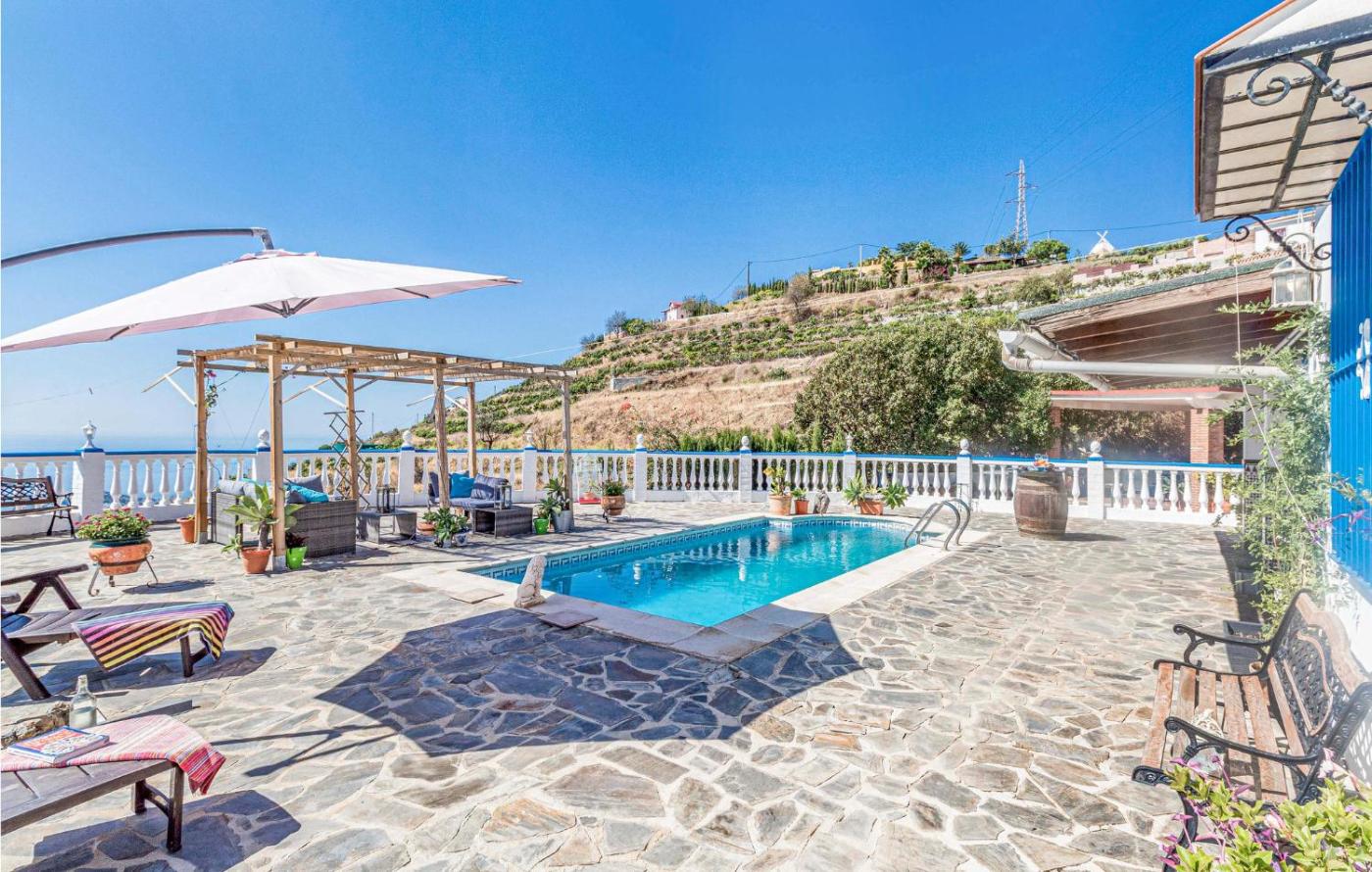 Casa de vacaciones de 2 dormitorios. This holiday home features a private pool. Featuring a private entrance, this holiday home also is comprised of 2 separate bedrooms, 1 bathroom with a shower, a kitchen and a dining area. Guests will find a stovetop, a refrigerator, a dishwasher and kitchenware in the fully equipped kitchen. The holiday home also has a barbecue. The holiday home offers a TV, a washing machine, a tea and coffee maker, a high chair for children as well as sea views. The unit offers 3 beds.