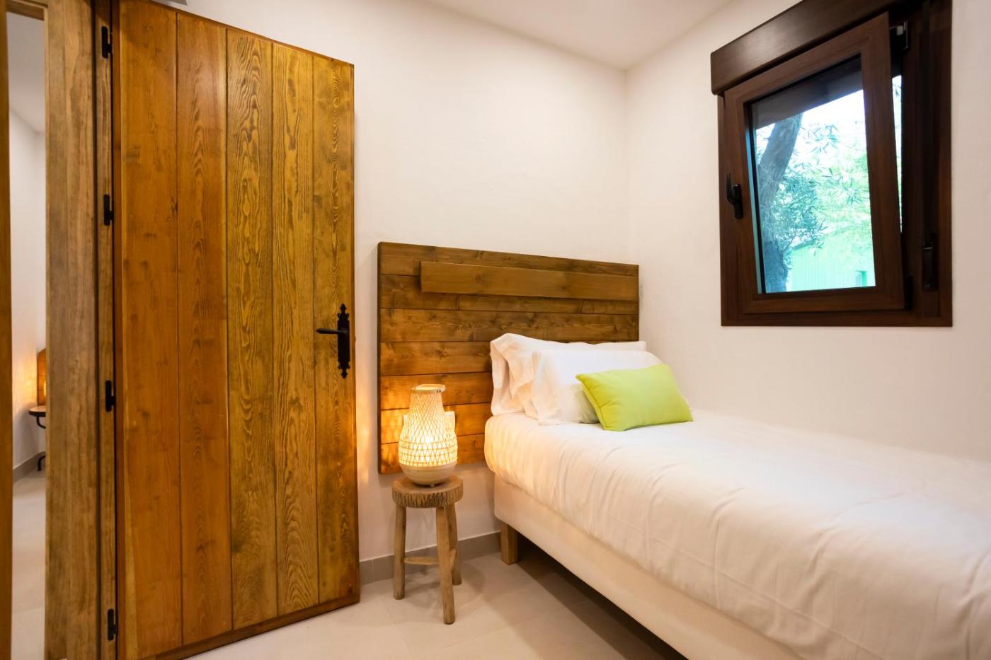 Chalet de 2 dormitorios. Este chalet es amplio y cuenta con 1 sala de estar, 2 dormitorios independientes y 1 baño con ducha y secador de pelo. Este chalet también dispone de terraza con vistas al jardÃn, aire acondicionado y TV de pantalla plana. Hay 4 camas. ;