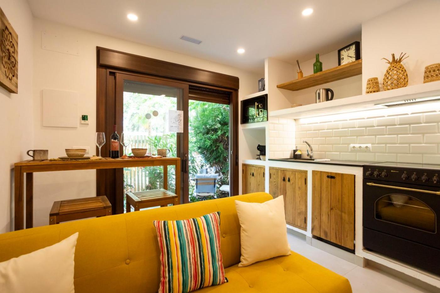Casa de 2 dormitorios. Esta casa con aire acondicionado consta de sala de estar, 2 dormitorios independientes y 2 baños con ducha. La casa también cuenta con vistas al jardÃn en la azotea, cafetera y TV de pantalla plana. La unidad tiene 3 camas.