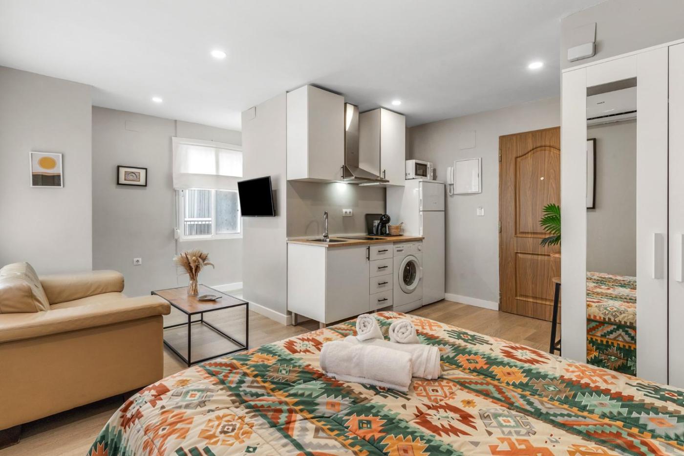 Estudio - Adaptado para personas con movilidad reducida. The studio features air conditioning, a washing machine, as well as a private bathroom boasting a hairdryer. Guests can make meals in the kitchen that features kitchenware, a microwave and a toaster. This studio provides a coffee machine, a TV and city views. The unit has 1 bed.