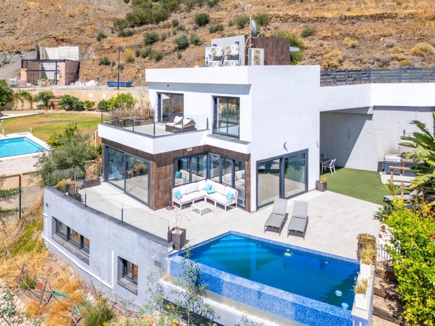 Luxury Seaview Villa Celeste - TCM está a 2 km de Playa de Mazagarrobo, en Torrox, y ofrece alojamiento con terraza, jardÃn y piscina al aire libre. Esta villa también tiene piscina privada y wifi gratis.