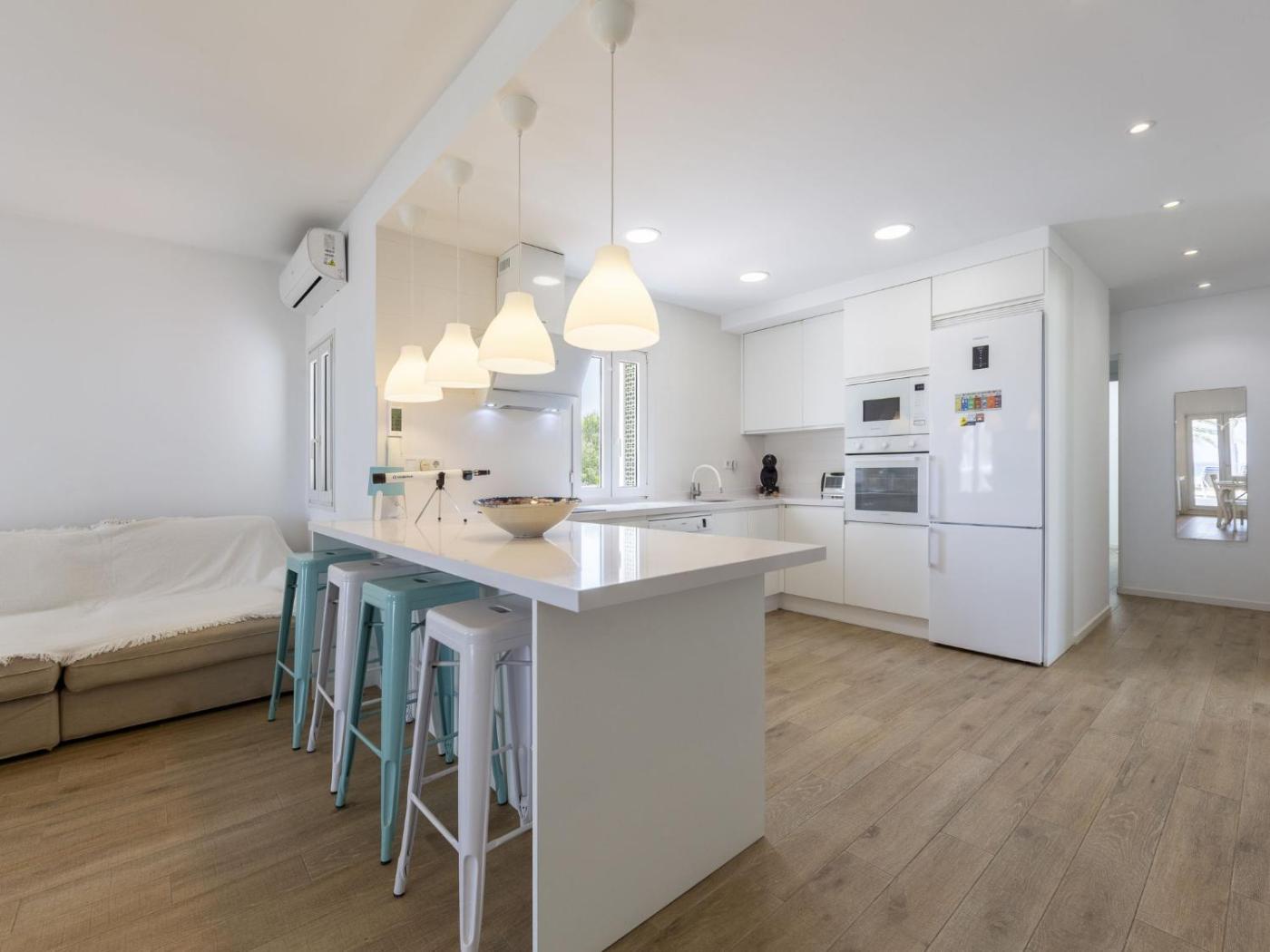 Esta casa o chalet con aire acondicionado consta de 3 dormitorios y 2 baños con bidet, ducha y secador de pelo. La cocina está equipada con nevera, lavavajillas y horno, además de cafetera.