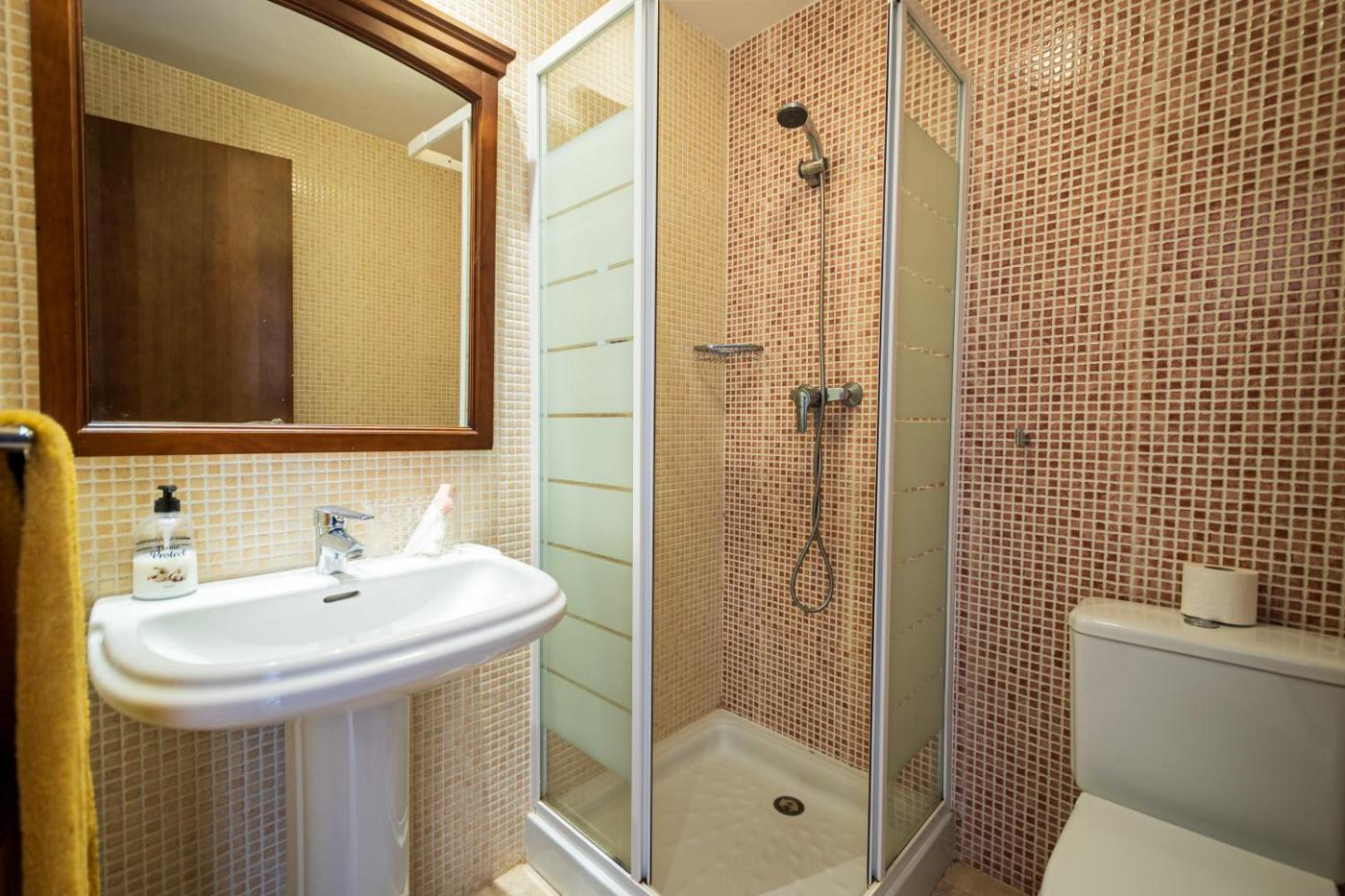 Apartamento de 2 dormitorios. The private pool is a top feature of this apartment. Boasting a private entrance, this air-conditioned apartment comes with 1 living room, 1 separate bedroom and 2 bathrooms with a bath and a bidet. In the fully equipped kitchen, guests will find a stovetop, a refrigerator, a dishwasher and kitchenware. The spacious apartment features a washing machine, a dining area, a wardrobe, a flat-screen TV with streaming services, as well as garden views. The unit has 2 beds.